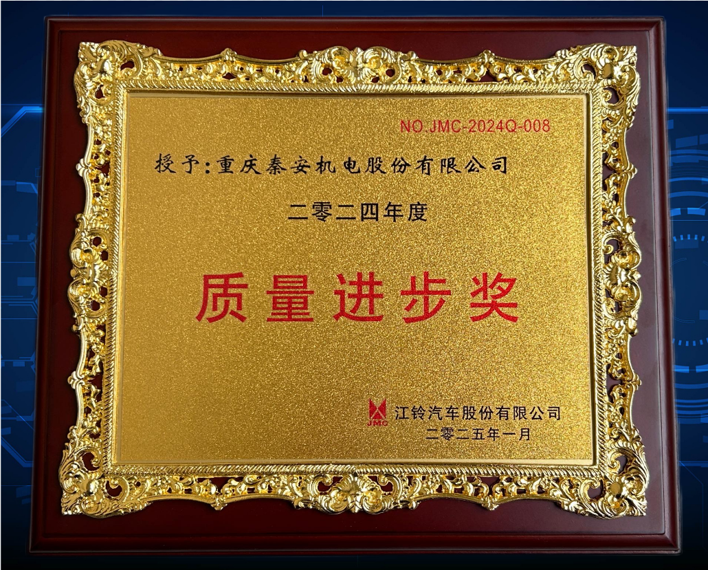 秦安股份榮獲江鈴汽車2024年度質(zhì)量進步獎